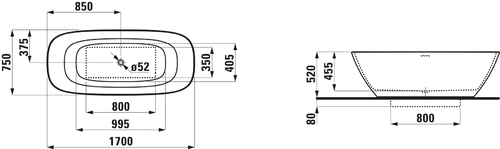 LAUFEN INO Badewanne 1700x750x520 freistehend oval weiß