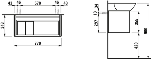 LAUFEN INO Waschtischunterschrank, zu Waschtisch 813301 & 813302, 770x350x355mm
