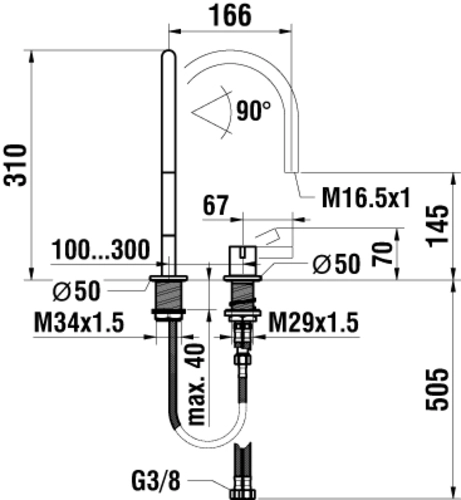 LAUFEN Kartell 2-Loch Waschtischmischer, Schwenkauslauf, ohne Ablaufventil, Ausladung 166 mm