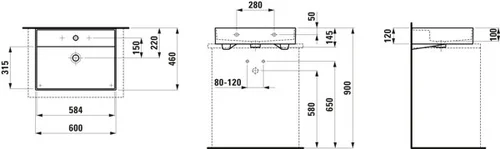 • Breite: 600 mm, Tiefe: 460 mm, Höhe: 160 mm