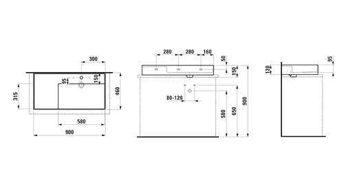 - Breite: 900 mm, Tiefe: 460 mm, Höhe: 120 mm