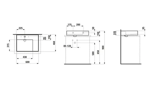 LAUFEN Kartell Aufsatzwaschtisch, Ablage rechts, 1 Hahnloch, ohne Überlauf, 600x460mm