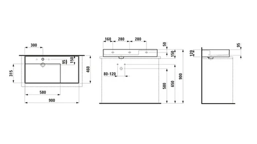- Breite: 900 mm, Tiefe: 460 mm, Höhe: 120 mm