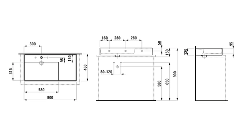 • Breite: 900 mm, Tiefe: 460 mm, Höhe: 120 mm