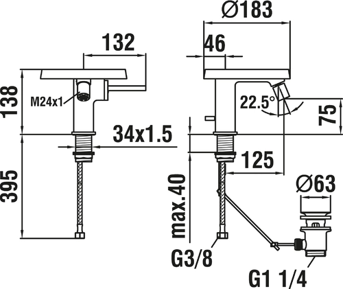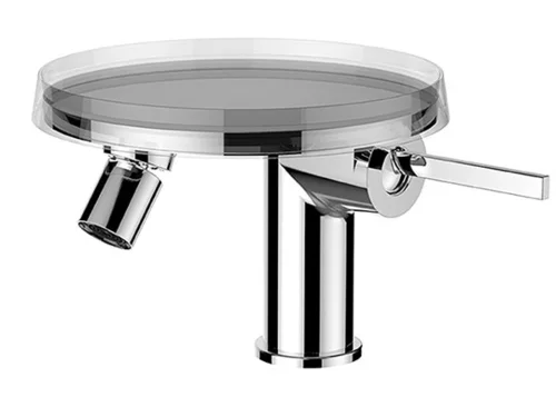 LAUFEN Kartell Einhebel-Bidetmischer disc, Festauslauf, mit Ablaufventil, inklusive Ablageschale, Ausladung 125 mm, chrom