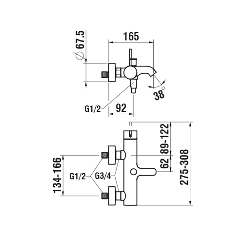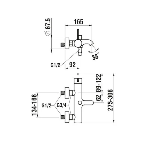 LAUFEN Kartell Einhebel-Wannenmischer, Aufputz, Komplettset, 0041411