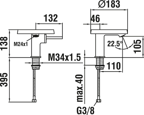 LAUFEN Kartell Einhebel-Waschtischmischer disc, Festauslauf, ohne Ablaufventil, Ausladung 110 mm, chrom