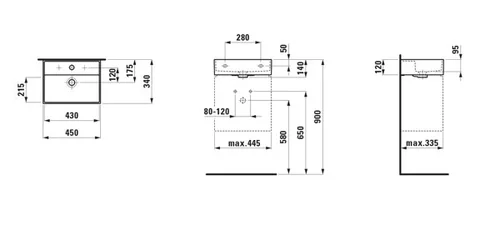 LAUFEN Kartell Handwaschbecken, unterbaufähig, 1 Hahnloch, mit Überlauf, 450x340mm