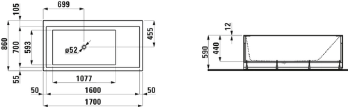 LAUFEN Kartell Mineralguß Badewanne Ecke links 1700x860x590mm, mit Schürze und LED beleuchteter Überlauf-Spalt, weiß