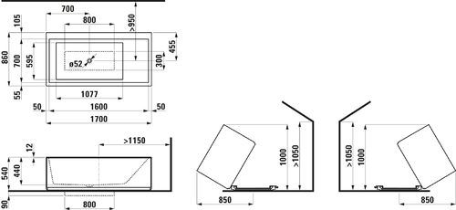 - bei Wannen mit Hubsystem Aussparung im Boden erforderlich