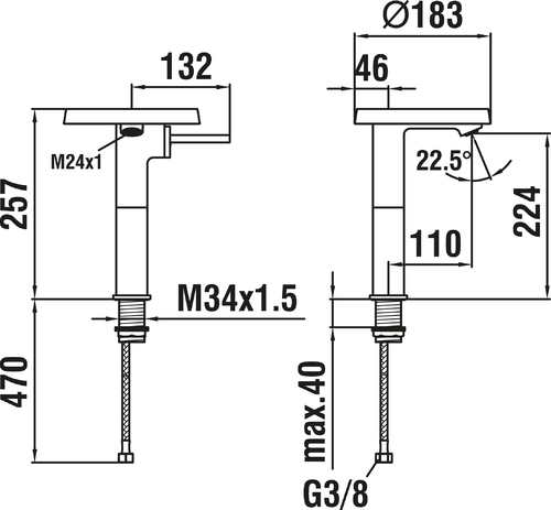 LAUFEN Kartell Standsäulen-Waschtischmischer, Festauslauf, ohne Ablaufventil, Ausladung 125 mm