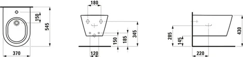 LAUFEN Kartell Wand-Bidet, 1 Hahnloch, 370x545x430mm