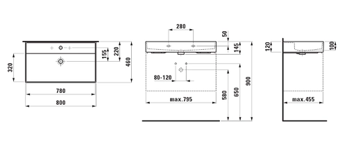 LAUFEN Kartell Waschtisch unterbaufähig, 1 Hahnloch, mit Überlauf, 800x460mm