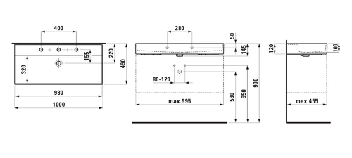 • Breite: 1000 mm, Tiefe: 460 mm, Höhe: 120 mm