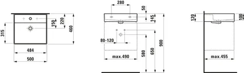 LAUFEN Kartell Waschtisch unterbaufähig, ohne Hahnloch, mit Überlauf, 500x460mm