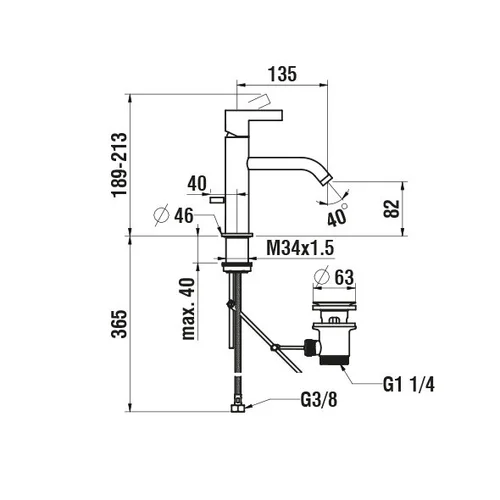 LAUFEN Kartell Waschtischmischer, mit Ablaufventil, Ausladung 135mm