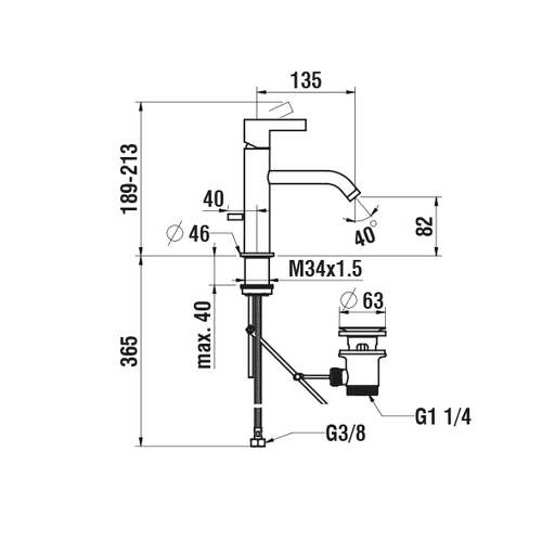 LAUFEN Kartell Waschtischmischer, ohne Ablaufventil, Ausladung 135mm