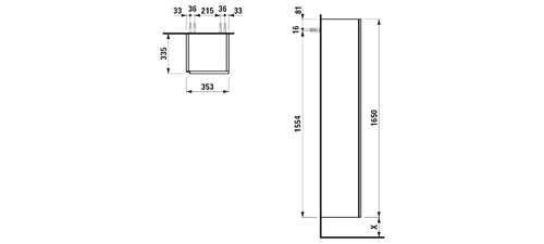 LAUFEN LANI Hochschrank, Scharnier rechts, SoftClose, 355x1650x335mm