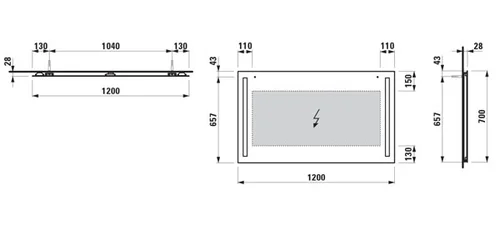 LAUFEN LANI Spiegel, zwei vertikal integrierten Leuchten, 1200x28x700mm