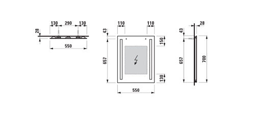 LAUFEN LANI Spiegel, zwei vertikal integrierten Leuchten, 550x28x700mm