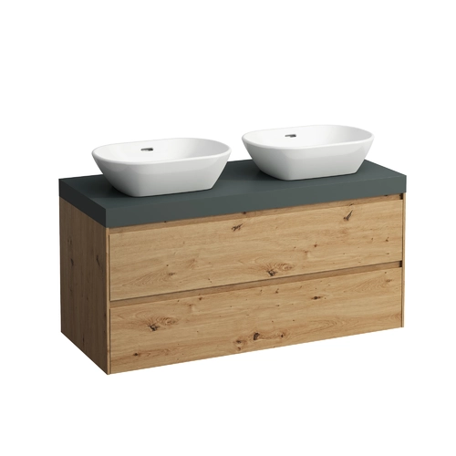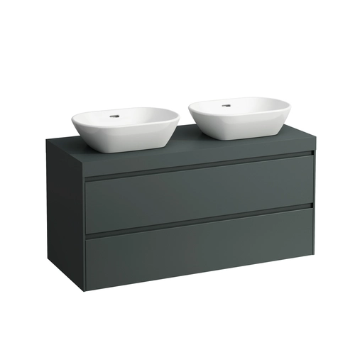 LAUFEN LANI Waschtischplatte verkehrsgrau inklusive Unterschrank, 2 Ausschnitte, 1185x495x580mm