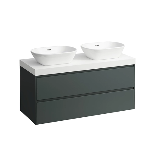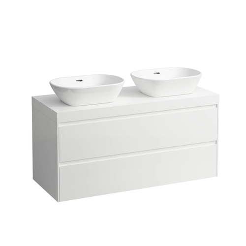 LAUFEN LANI Waschtischplatte weiß matt inklusive Unterschrank, 2 Ausschnitte, 1185x495x580mm