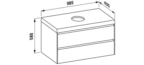 - Breite: 985 mm, Tiefe: 495 mm, Höhe: 580 mm