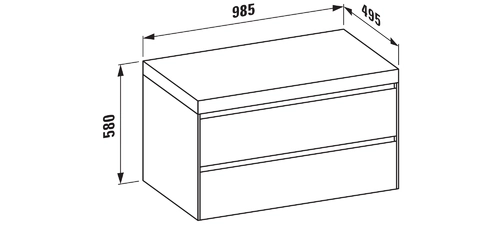 - Breite: 985 mm, Tiefe: 495 mm, Höhe: 580 mm