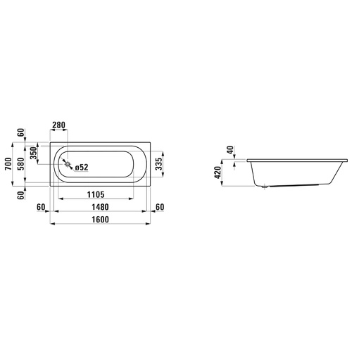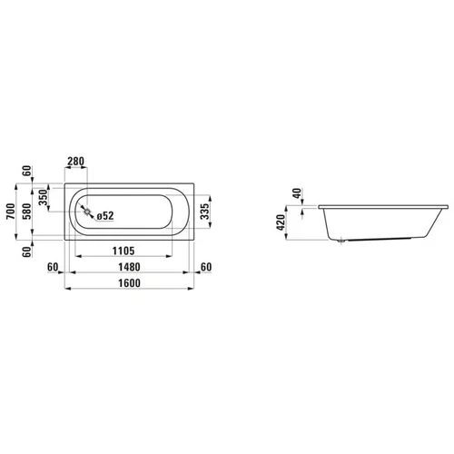 LAUFEN LUA Badewanne, Einbauversion, Sanitäracryl, 1600x700x420mm, weiß