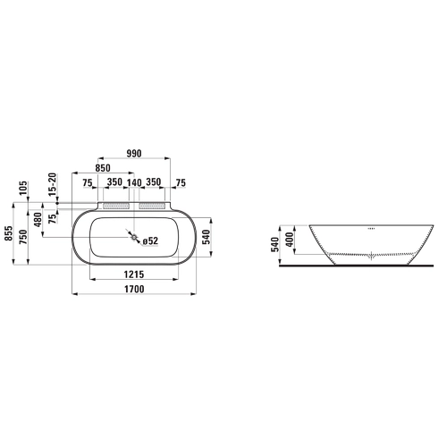 LAUFEN LUA Badewanne wandangebunden, 855x1700x400mm, aus Marbond