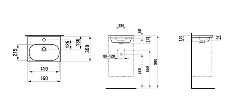 LAUFEN LUA Handwaschbecken, ohne Hahnloch, mit Überlauf, 450x350mm