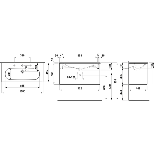 LAUFEN LUA Set LANI Komplettset, Waschtisch 1 Hahnloch inklusive Waschtischunterschrank, 1000x515x440mm