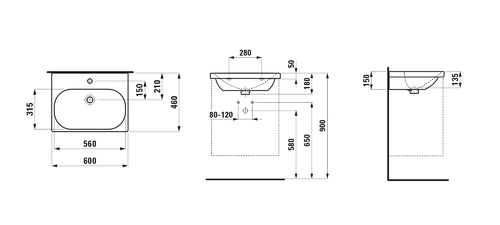 LAUFEN LUA Waschtisch, 1 Hahnloch, mit Überlauf, 600x460mm, unterbaufähig