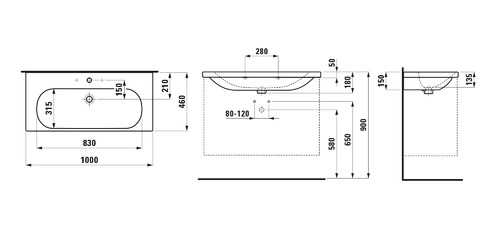 LAUFEN LUA Waschtisch, 1 Hahnloch, ohne Überlauf, 1000x460mm