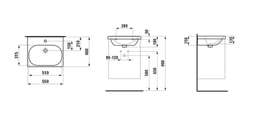 LAUFEN LUA Waschtisch, ohne Hahnloch, mit Überlauf, 550x460mm, unterbaufähig