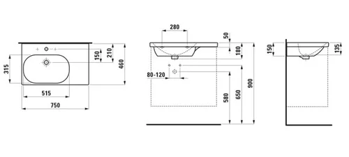 LAUFEN LUA Waschtisch, ohne Hahnloch, ohne Überlauf, 750x460mm, Ablage rechts
