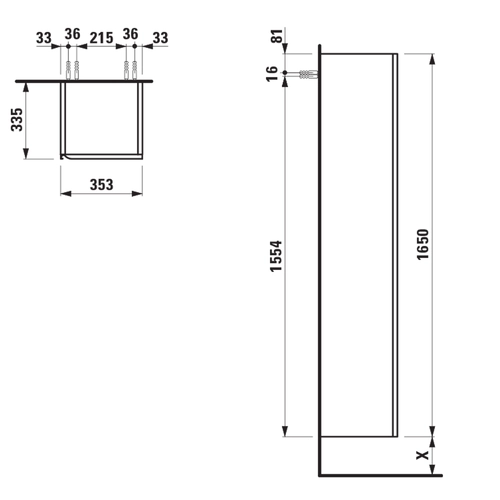 • Maße (BxTxH): 353 x 335 x 1650 mm