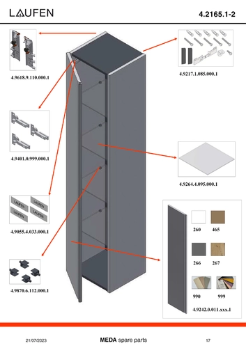 LAUFEN MEDA Hochschrank, 1 Tür SoftClose, Scharnier rechts, 353x335x1650mm