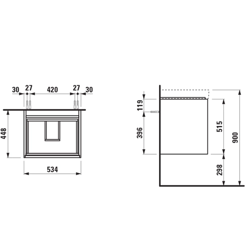 LAUFEN MEDA Waschtischunterbau, 2 Schubladen, inklusive Ordnungssystem, zu H810112, 534x448x515mm