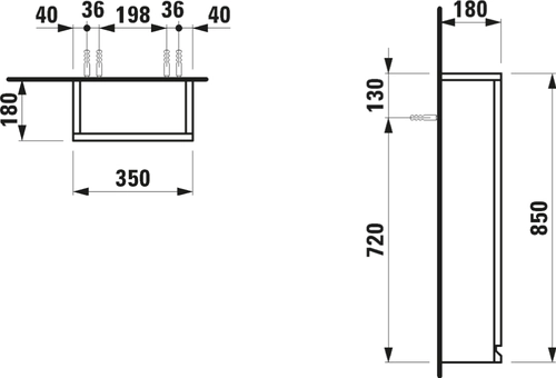 • Breite: 350mm, Tiefe: 180mm, Höhe: 850mm