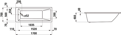 LAUFEN PRO Badewanne Einbauversion 1700x700x460 mm, weiß