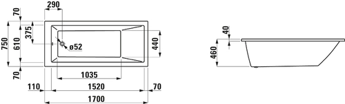 LAUFEN PRO Badewanne Einbauversion 1700x750x460 mm, weiß