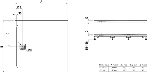 - Durchmesser Ablauf: 90 mm