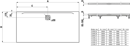 LAUFEN PRO Duschwanne, 1800x700x33mm, superflach, 0