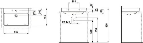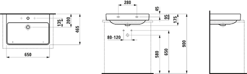 LAUFEN PRO S Aufsatzwaschtisch, 1 Hahnloch, ohne Überlauf, 650x465mm