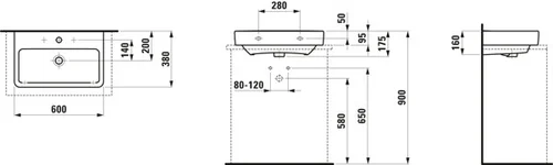 LAUFEN PRO S Compact Aufsatzwaschtisch, 1 Hahnloch, ohne Überlauf, US gesch., 600x380mm