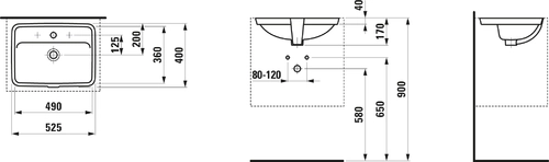 LAUFEN PRO S lavabo encastrado, sin agujero para grifo, con rebosadero, 525x400mm, US cerrado