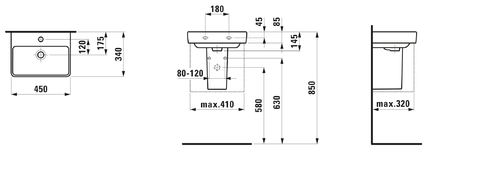 LAUFEN PRO S Handwaschbecken, 1 Hahnloch, ohne Überlauf, 450x340mm