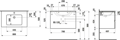 • Breite: 800mm, Tiefe: 500mm, Höhe: 545mm