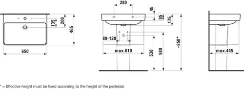 LAUFEN PRO S Waschtisch, 1 Hahnloch, mit Überlauf, 650x465mm